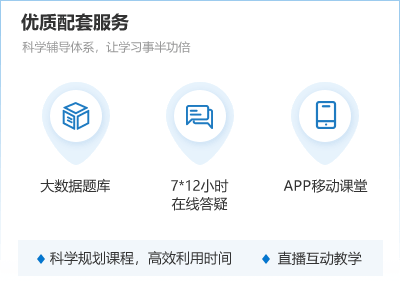 特色:名師輔導(dǎo)3階段系統(tǒng)教學(xué),4項(xiàng)紙質(zhì)版配套資料贈(zèng)送,實(shí)力考證